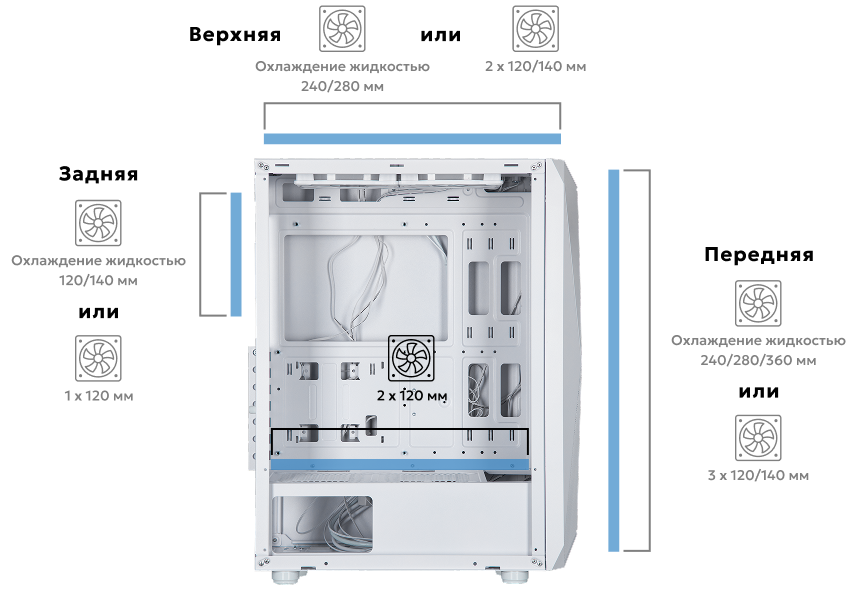 Корпус 2E GAMING Aruba черного (2E-G3313B) и белого (2E-G3313W) цветов – отличный вариант для создания современной игровой или рабочей станции с активной системой обдува компонентов. В комплекте три встроенных 120мм ARGB вентилятора за стальной сетчатой ??лицевой панелью плюс дополнительно два 120мм ARGB вентилятора на верхней панели. Модель отлично подойдет для самостоятельной и промышленной сборки благодаря рационально организованному внутреннему пространству и не сложной конструкции.
